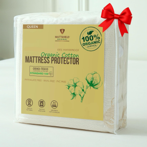 Waterproof Organic Mattress Protector Queen – Soft Organic Cotton Top – Noiseless & Breathable 250 GSM Pad Cover – Deep Pocket Fitted Design
