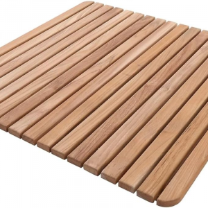 Nordic Style Premium Teak Shower and Bath Mat for Indoor and Outdoor Use – Non-Slip Wooden Platform for Spa, Sauna, Pool, Hot Tub – Flooring Decor and Protector (24″ X 24″, Natural Finish)