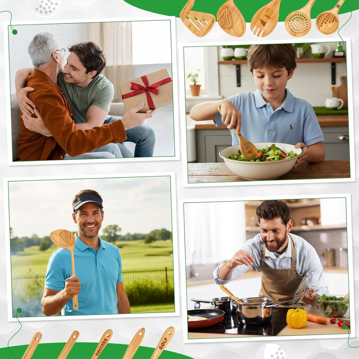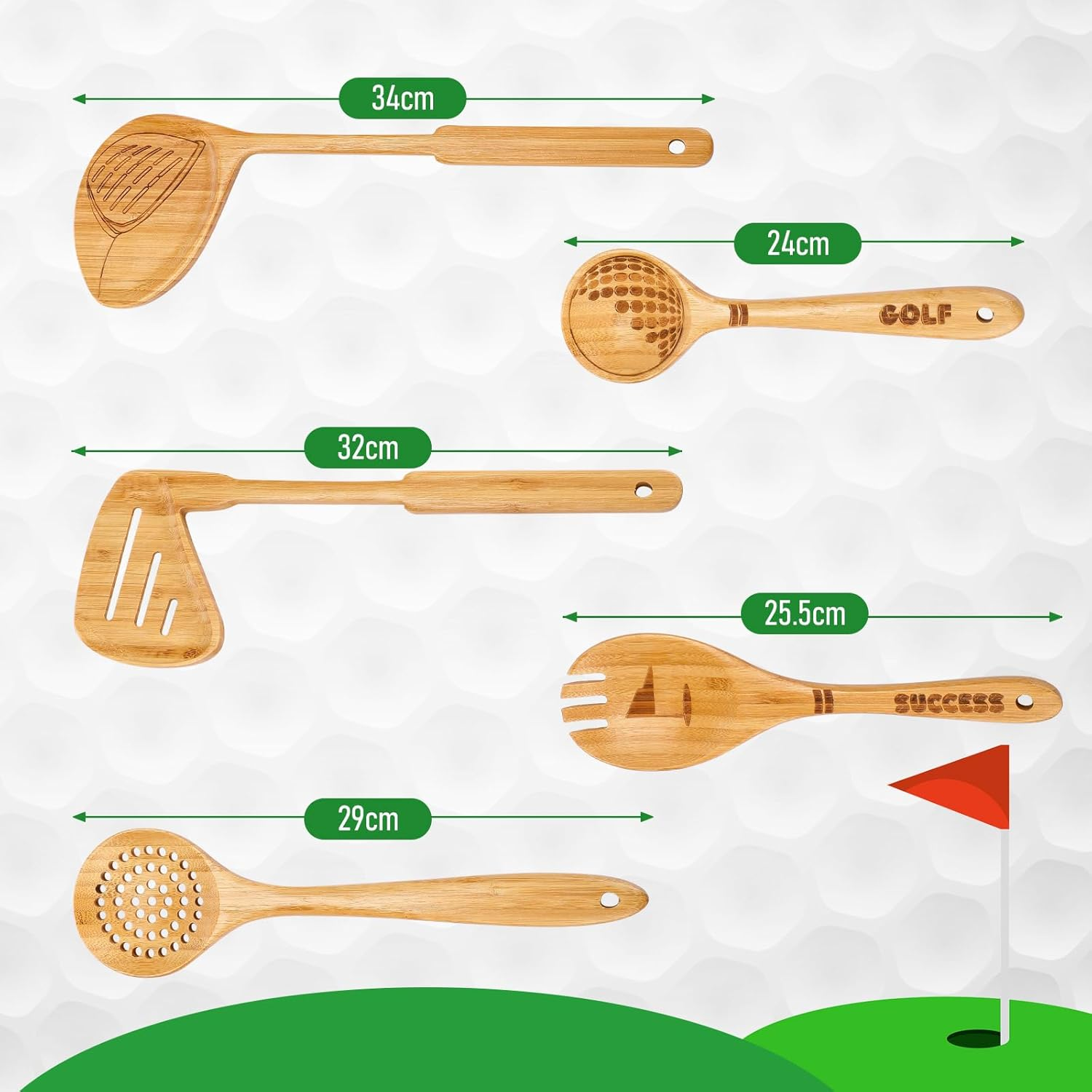 - Ideal Gift: our bamboo kitchenware is an ideal gift for golf lover, and is ideal as a gift for husbands, fathers, grandfathers, etc., during holidays such as Thanksgiving, Christmas, New Year’s, birthdays, anniversaries, and Father’s Day; They will surely be pleasantly surprised and delighted to receive this gift