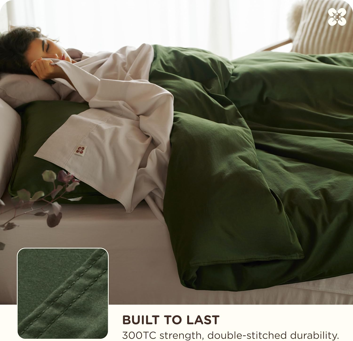 • Long-Lasting & Easy Care: Featuring double-stitched edges and tightly woven 300TC sateen fabric for enhanced strength and durability. Lab-tested seam strength of 15.3 lbf ensures long-lasting performance. This organic cotton queen duvet cover set is easy to maintain—machine wash cold, tumble dry low, and remove promptly to minimize wrinkles